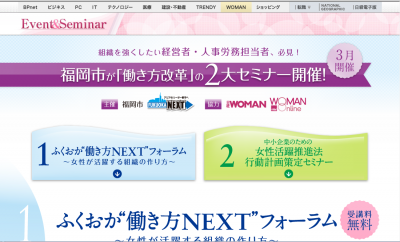 福岡市で開催8日、福岡市は、昨年8月に成立した「女性の職業生活における活躍の推進に関する法律(女性活躍推進法)」に基づく、「一般事業主行動計画」の策定プロセスを具体的に説明するセミナーを開催すると発表した。
