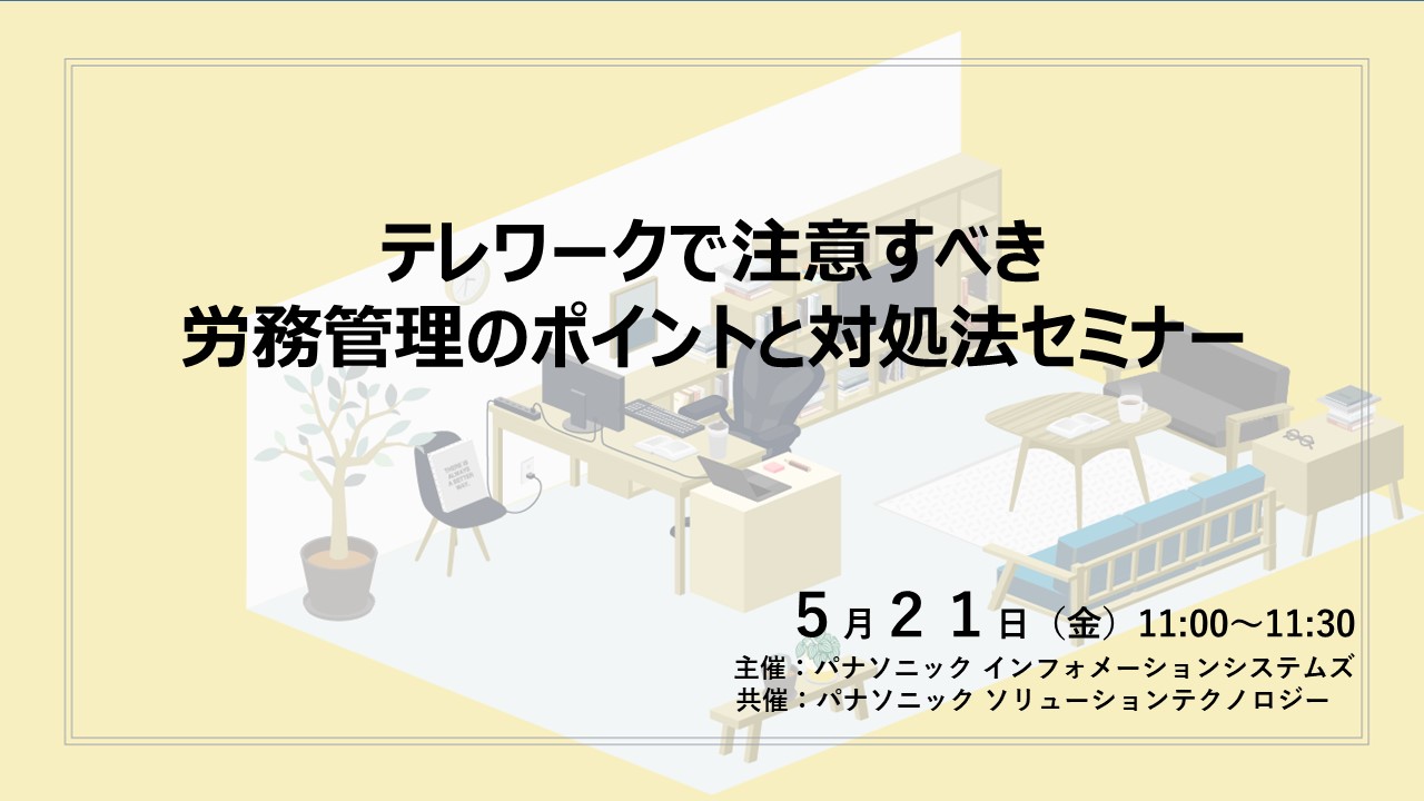 直面した労務管理の課題と解決方法を紹介パナソニック インフォメーションシステムズ株式会社は、2021年5月21日、オンラインセミナー『テレワークで注意すべき労務管理のポイントと対処法セミナー』を開催する。